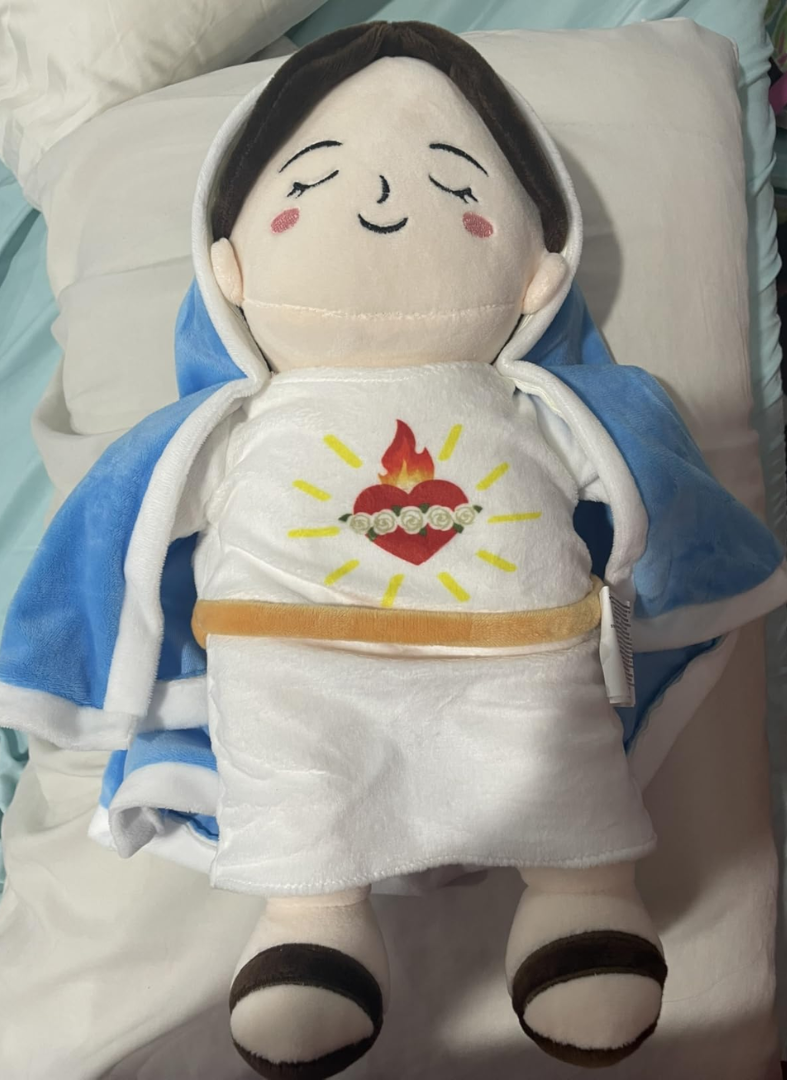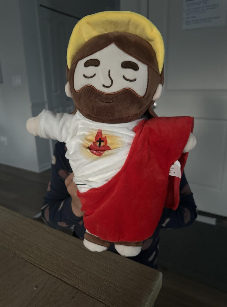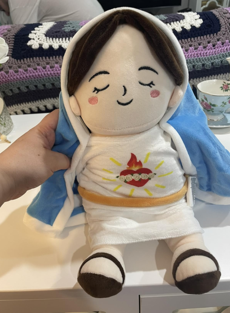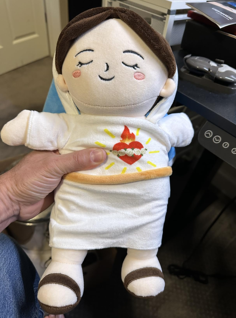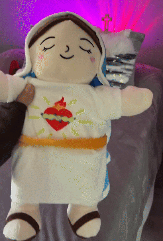 Muchas personas lo usan para dormir acompañados, reducir ansiedad, rezar o tener un momento de paz. No es solo un peluche: es un símbolo de fe, calma y compañía espiritual.